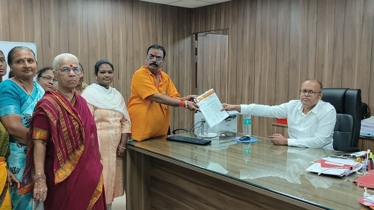 अतिवृष्टीमुळे सहाय्यता निधीपासून वंचित राहिलेल्या कुटुंबीयांना मदत द्या, अशी मागणीचे निवेदन मा. उपजिल्हाधिकारी अमित भोसले यांना देताना विष्णू कारमपुरी (महाराज), रेखा आडकी, रेखा खुणे, अश्विनी सूर्यवंशी, सुरेखा दास, जयश्री हबीब आदी उपस्थित.