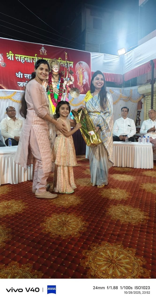 Engg. B.tech in Electronics and Communication Engg. यांच्या हस्ते दीप प्रज्वलन करून त्यांचे स्वतः चे अनुभव व समाजातील महिला व समाजासाठी प्रेरणादायी संभाषण केले त्यानंतर चित्रकला, रांगोळी , मेहंदी , एक मिनिट , क्रिकेट , फॅन्सी ड्रेस स्पर्धेचे बक्षीस वाटपाचे समारंभ करण्यात आले या वेळी व श्री सहस्त्रार्जुन युवा प्रतिष्ठान चे सदस्य व ssk समाजातील सर्व मंडळ , कार्यकारिणी बंधू – भगिनी मोठ्या संख्येने उपस्थित होते .