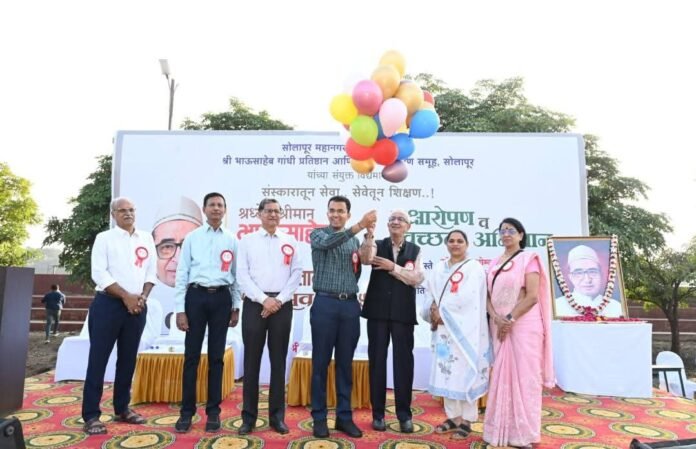 सोलापूर : श्रद्धेय भाऊसाहेब गांधी यांच्या, ‘जन्मशताब्दी वर्ष’ – प्रारंभानिमित्त आयोजित, ‘वृक्षारोपण’ व सामुदायिक ‘स्वच्छता’ अभियाना मध्ये, सोलापूरकरांच्या तसेच,वालचंद शिक्षण समूहातील माध्यमिक, कनिष्ठ, वरिष्ठ महाविद्यालयाच्या विविध विभागातील प्राचार्य, प्राध्यापक, विभाग प्रमुख, तसेच विद्यार्थी,शिक्षक व शिक्षकेतर कर्मचारी वृंद यांच्या उत्स्फूर्त सहभागामुळे अभूतपूर्व यश मिळवले. कडाक्याच्या थंडीची सकाळ असूनही,वालचंद इन्स्टिट्यूट ऑफ टेक्नॉलॉजी (WIT) प्रांगणात सकाळी ठीक सात वाजता सुरू झालेल्या या उपक्रमात, भाऊसाहेबांच्या कार्याबद्दल नितांत श्रद्धा असणारे, सामाजिक, राजकीय, व्यापारी, धार्मिक क्षेत्रातील निमंत्रित मान्यवर नागरिक, विद्यार्थी, शिक्षकवर्ग, सामाजिक संस्थांचे कार्यकर्ते आणि वालचंद शिक्षण समूहातील सर्व सहकाऱ्यांनी मोठ्या संख्येने हजेरी लावली.