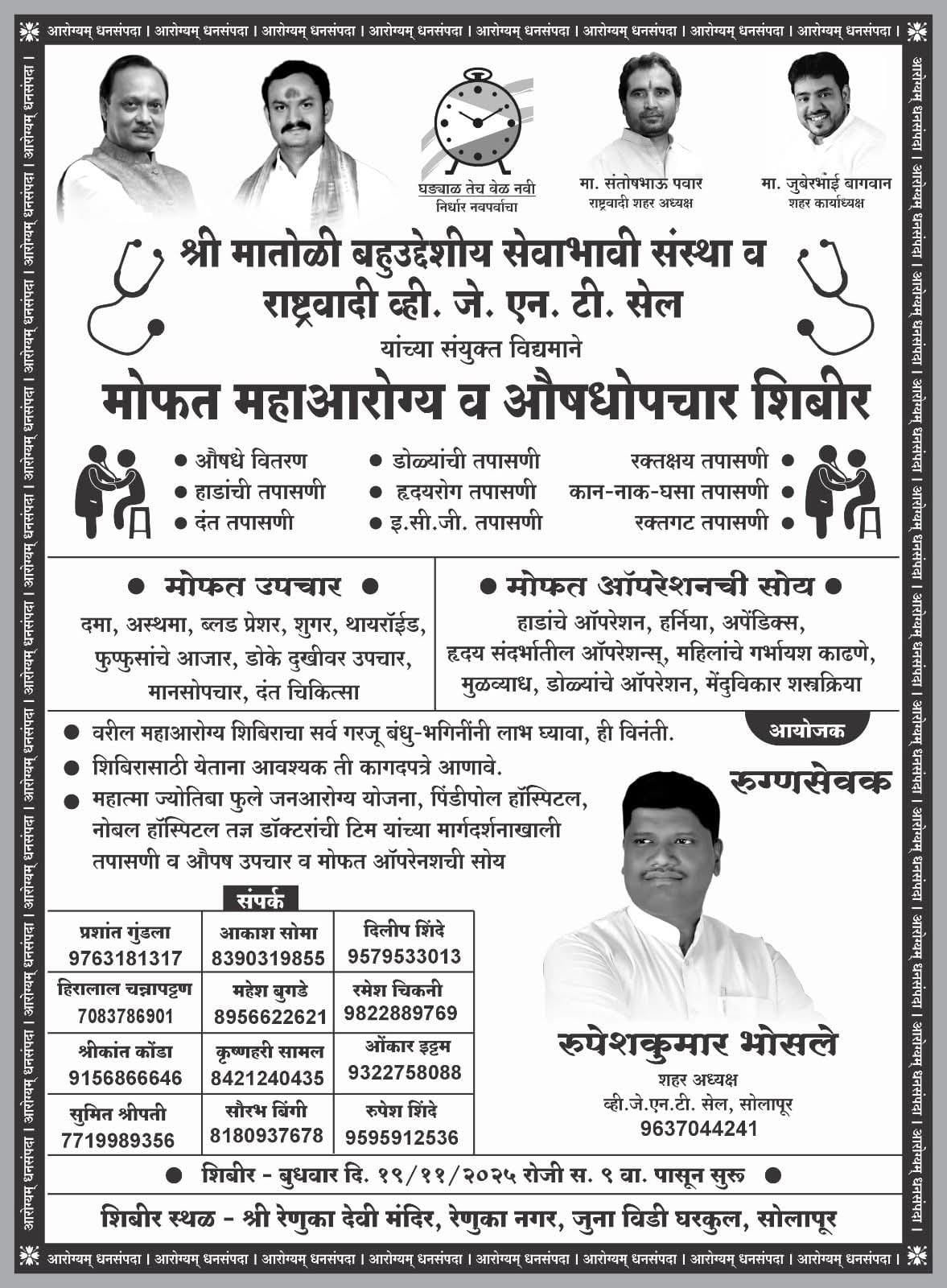 मोफत आरोग्य शिबीर व औषध उपचार व मोफत आॅपरेशन