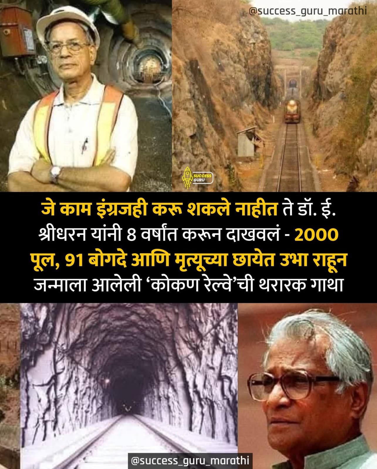 कोकण रेल्वेची कल्पना सुरुवातीला अशक्य वाटत होती. इंग्रजांनी प्रयत्न केला पण मागे हटले—कारण हा मार्ग म्हणजे पर्वत, खोल दऱ्या, असंख्य नद्या आणि भयानक मान्सून! पण नाथ पै, मधु दंडवते आणि खास करून जॉर्ज फर्नांडिस यांनी ही कल्पना पुन्हा जिवंत केली. जॉर्ज फर्नांडिस यांनीच ई. श्रीधरन यांना संपर्क करून प्रोजेक्टचे नेतृत्व दिले—आणि इथूनच ‘अशक्य’ शक्य करण्याचा प्रवास सुरू झाला.