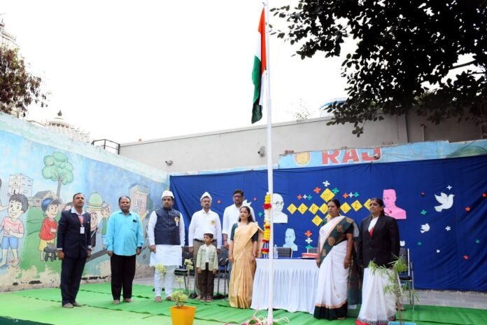 स्व. विष्णुपंत कोठे यांच्या संकल्पनेतून सुरु झालेल्या राज मेमोरियल इंग्लिश स्कूल, सोलापूर येथे प्रजासत्ताक दिनानिमित्त झेंडा फडकविण्याचे भाग्य लाभले यावेळी शहर मध्य चे आमदार सन्माननीय देवेंद्र दादा कोठे, प्राचार्या रोहिणी सुरा, डॉ. स्वप्नाली बोरगावकर यांची प्रमुख उपस्थिती होती.