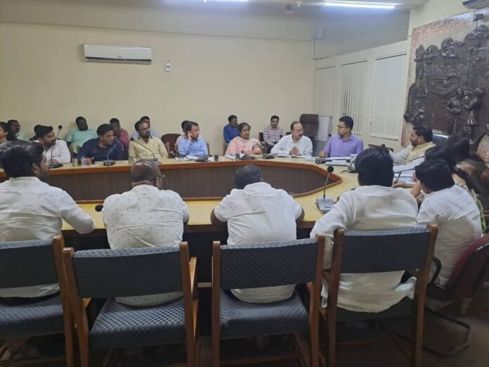 सोलापूर : सोलापूर महानगरपालिकेच्या क्रांतीज्योती सावित्रीबाई फुले सभागृह येथे आज महापौर श्री. विनायक कोंड्याल यांच्या अध्यक्षतेखाली शहरातील स्मशानभूमी संदर्भात आढावा बैठक पार पडली. शहरातील स्मशानभूमींच्या सुविधा, विकासकामे व पुढील नियोजनाबाबत सविस्तर चर्चा करण्यात आली.